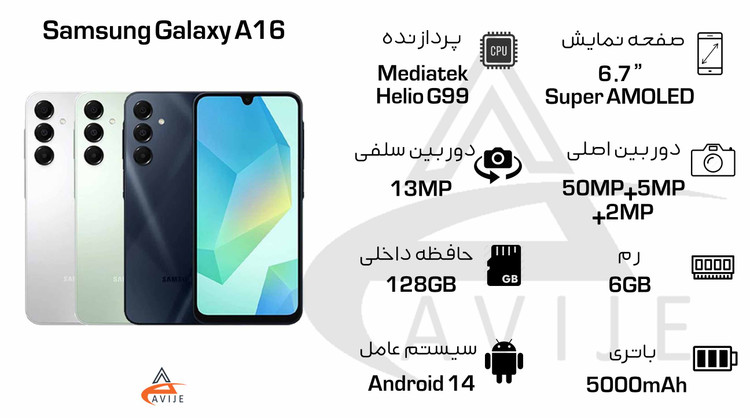گوشی سامسونگ ویتنام مدلa16حافظه 128 رم4گیگابایت